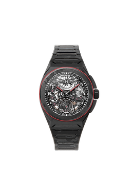 The UltraFino’s fully integrated high-density carbon bracelet enhances the watch’s fluidity and ergonomics, following the contours of the curved case to create an unbroken line of sculptural elegance.